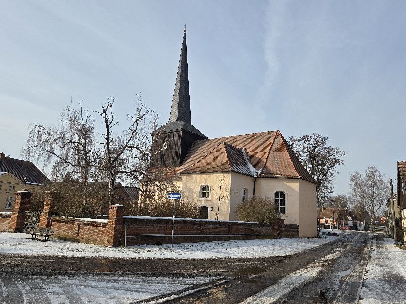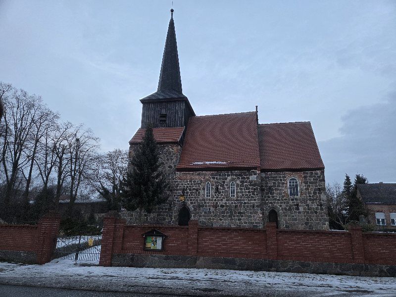 Nun geht es durch das Straßendorf Flatow, hier ist sogar das Tor zur Kirche geschlossen.