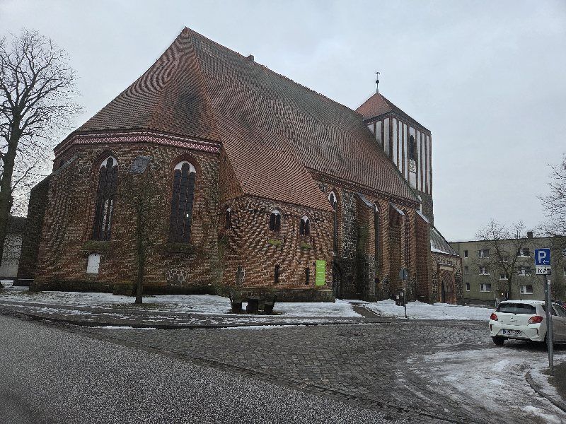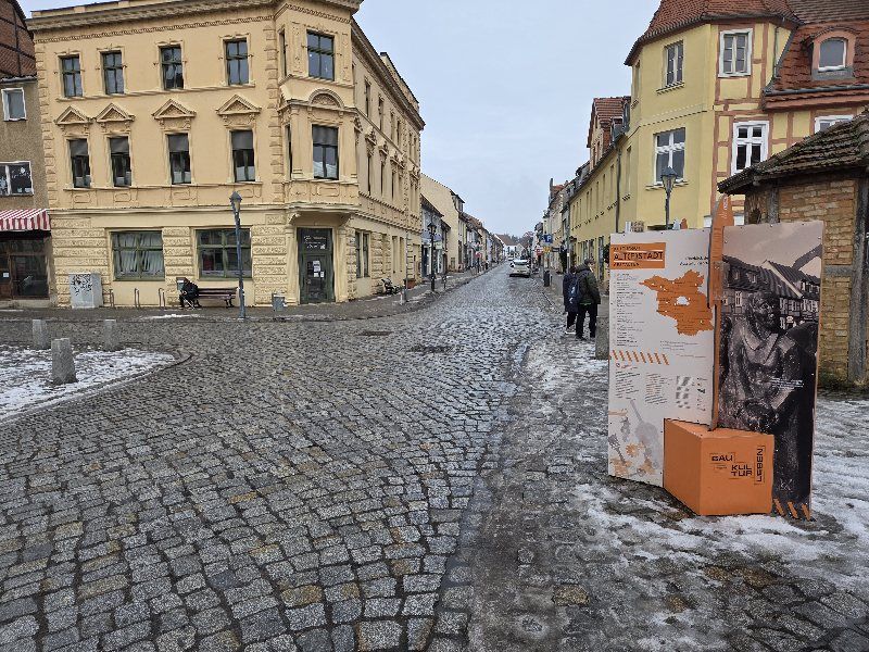 Es geht anderthalb Stunden an der Westseite des Sees entlang bis ich auf eine schnurgerade Straße nach Westen stoße, die in ca. 30 Minuten in das Strandbad und die ehemalige Hansestadt Kyritz führt. Es gibt einen schönen Marktplatz und adrette Bürgerhäuser, allerdings ist die Kirche verrammelt und im örtlichen Plattenladen – so etwas gibt es hier noch – ist der Besitzer ins Gespräch über Musikanlagen mit einem anderen Kunden vertieft und würdigt mich keines Blickes. Ich sehe die CD-Auswahl, die sich von Schlager über Reinhard Mey und die böhsen onkelz erstreckt und verlasse das Etablissement postwendend. Insgesamt ernüchtert mich der Ort.