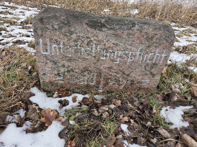 Mit schweren Beinen und einem Loch im Bauch geht es weiter Richtung Rehfeld, wo ein Stein exakt markiert, welche Gemeinde die Flächen bis wohin unterhalten muss. Das nenne ich Transparenz.