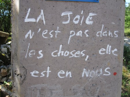Das ist gleichzeitig eine idealistische wie auch eine pragmatische Perspektive. Man könnte mit einer Betonung des existentialistischen Aspekts auch sagen: „Die Freude ist in uns oder sie ist nicht.“ Das würde mir als kategorische Aussage fast noch besser gefallen. Ist aber als Satz etwas freudlos…