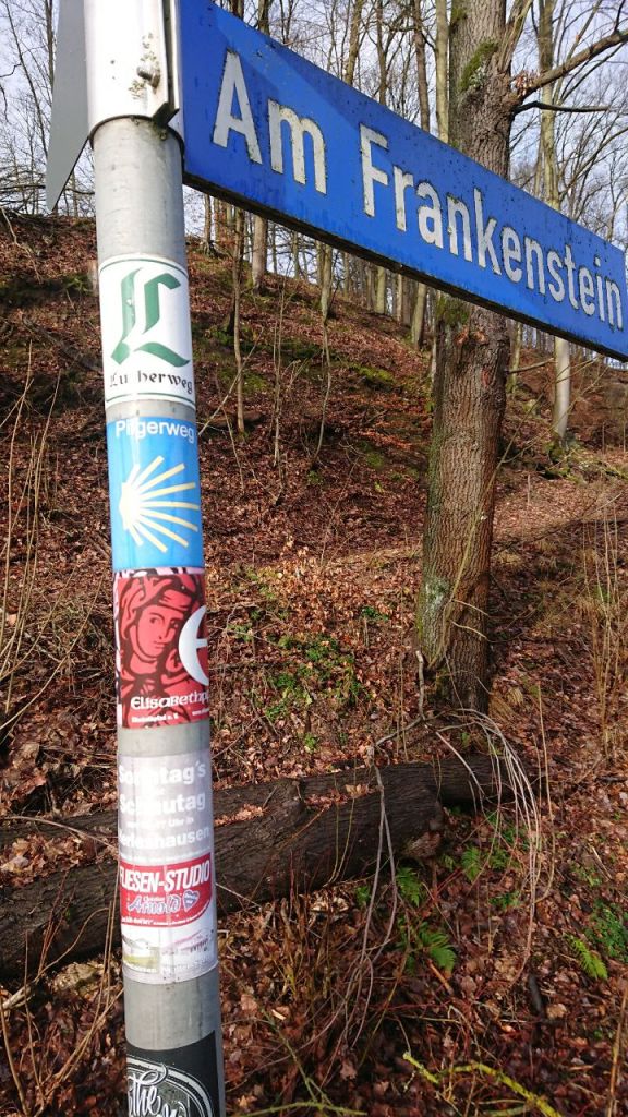 In Eisenach ist es bereits dunkel um 18 Uhr. Ich gehe unter den Gleisen durch nach Norden. Es geht ein gutes Stück parallel zur Bahn, ich passiere einige Bahnunterführungen. Ich orientiere mich nun etwas nach Norden, es geht bergauf in eine Eigenheimsiedlung. Auf einer Sackgasse nach Westen, wo bei jedem zweiten Haus die Bewegungsmelder anschlagen und mir den Weg beleuchten, komme ich aufgrund der Steigung etwas ins Schwitzen.