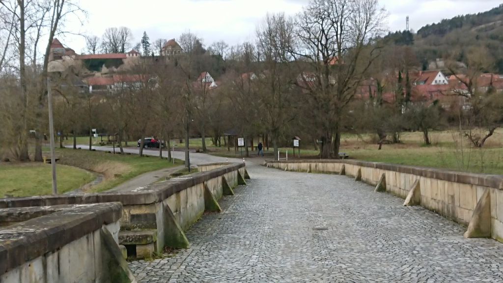Über 700 Jahre hält die Brücke, dann kommen die Nazis und sprengen am 1.4.1945 sinnlos zwei Bögen der Brücke (Verbrannte Erde), um den Vormarsch der Amerikaner noch zu stoppen. Sie wurde dann 1952 wieder eröffnet. Die Werra ist heute unter der Brücke ein reißender Strom, der Strudel an den Pfeilern bildet.