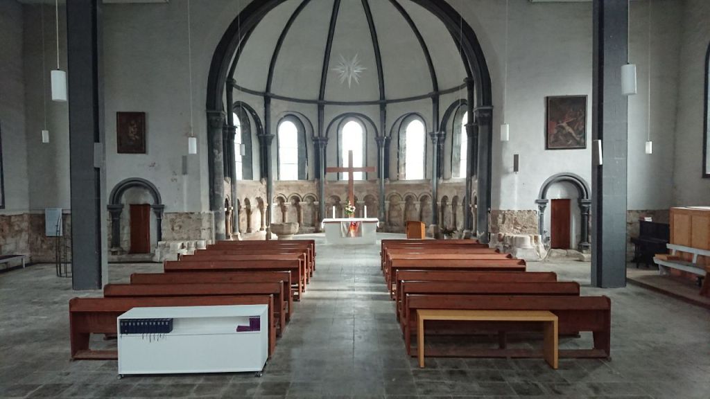 Die schnucklige Jakobuskirche weist eine Besonderheit auf. Ein freischwebendes zweischichtiges und zweifarbiges Netzgewölbe im Chorraum. So etwas gibt es in Deutschland nur noch in Frankfurt (St. Leonhard) und in Meisenheim.