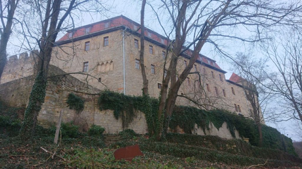 Nun sind meine Lebensgeister wieder geweckt. Zuerst gehe ich rüber zum Museum, das leider schon in 20 Minuten schließt. Ich gucke mir die Elisabethkemenate im Keller an, Elisabeth von Thüringen hat mehrere Jahre auf der Creuzburg gelebt und gewirkt, indem sie sich um die Armen gekümmert hat. Zwei ihrer drei Kinder sind hier geboren worden.