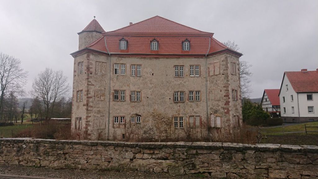 Auf gerader Strecke geht es weiter nach Netra, wo die Kirche mit dem Wehrturm leider auch wieder zu ist. Am Ortsausgang steht ein langsan verfallendes Wasserschloss, um das sich niemand zu kümmern scheint.