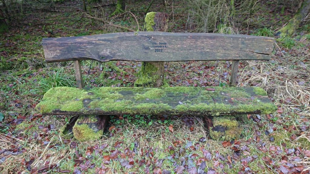 Von Creuzburg nach Westen folgen der Jakobsweg und der Elisabethpfad, die oft identisch sind, zwei verschiedenen geteerten Routen. Ich gehe einen dritten Wiesenweg anfangs an der Werra entlang, die mich verblüfft, weil sie von West nach Ost fließt. Flüsse haben eben immer die Tendenz, zu mäandern und nicht direkt auf ihr Ziel zuzufließen. Manchmal geht es dann auch in eigentlich „kontraproduktive“ Richtungen. An der Brücke über die Ifta, die unweit in die Werra mündet, vereinigt sich mein Weg wieder mit dem Elisabethpfad. Es nieselt nun leicht und es geht bergauf bis zur alten innerdeutschen Grenze (1. Überschreitung) im Wald. An der Stelle ist eine Rastbank sowie eine metallene Deutschlandkarte. Quer verläuft der Kolonnenweg, mitten im damaligen Todesstreifen, heute das Grüne Band, dessen 1393 km man komplett abwandern kann.