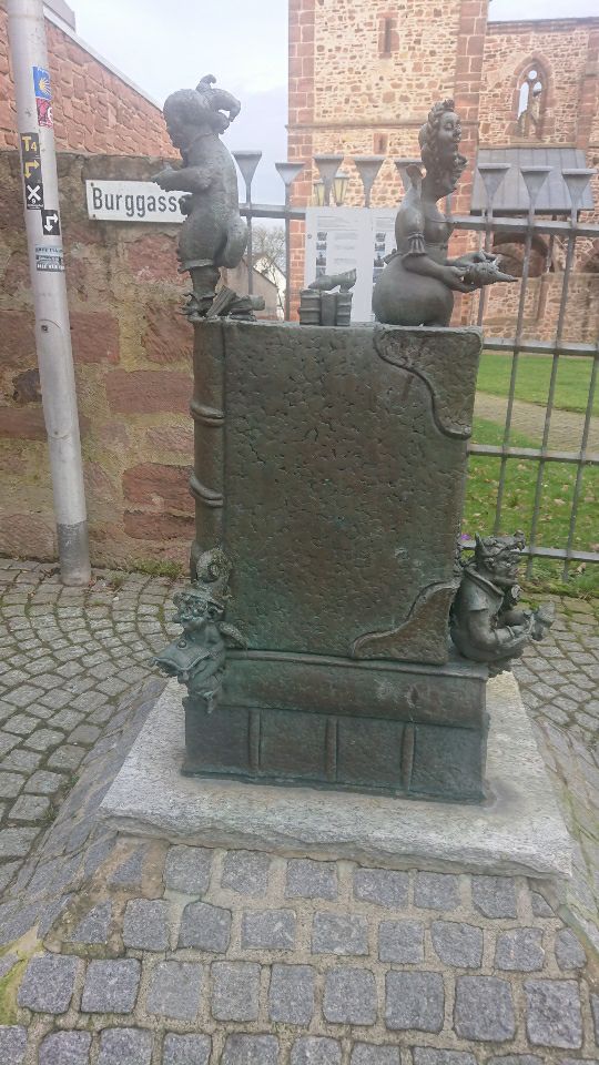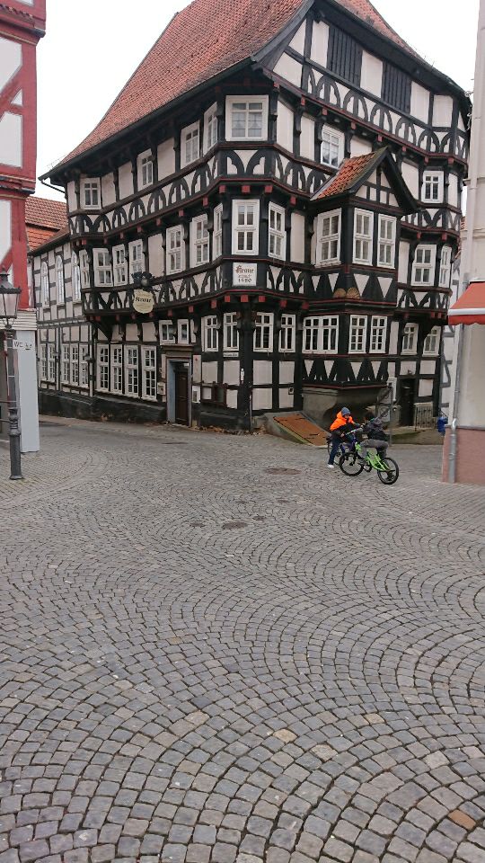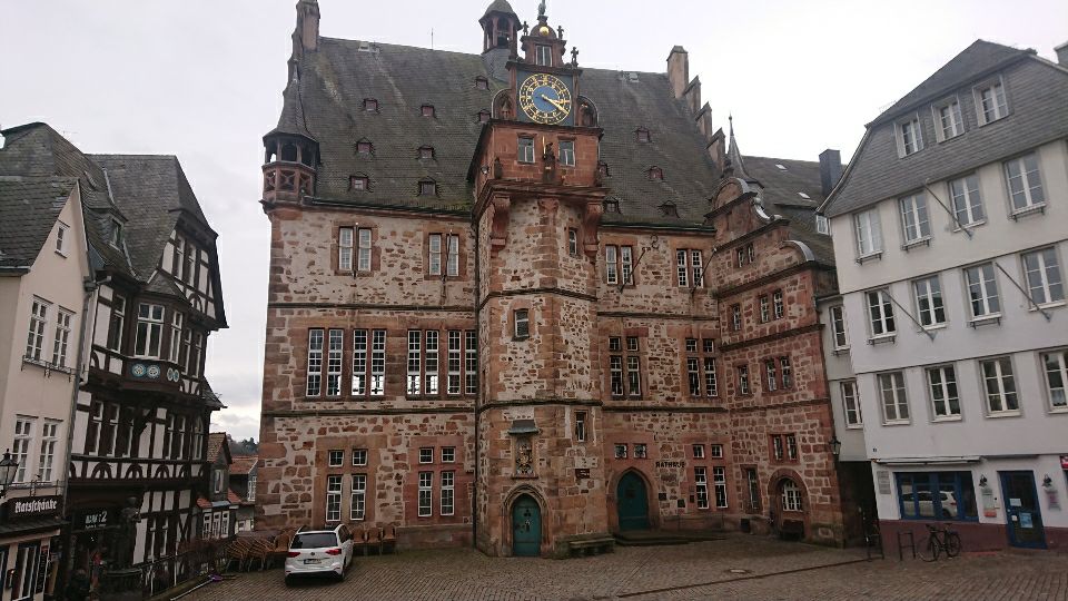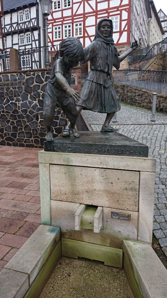 Anschließend trinke ich in einem netten Studentencafe noch zwei frische Minztees und mache eine Altstadtführung rauf und runter durch das Gassengewirr bis hoch hinauf zum Schloss auf den Spuren der Gebrüder Grimm. Eine sehr amüsante Schnitzeljagd, wo man genau hingucken musste, um die Motive aus den Märchen zu finden. Der langsam zunehmende Nieselregen tat meiner Entdeckungslust keinen Abbruch.