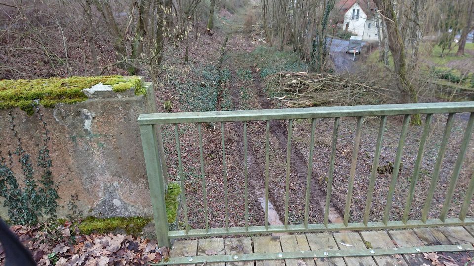 Hier geht es über die u. a. von Flixtrain befahrenen Bahnschienen der Strecke Eisenach – Bebra und ich stoße auf den Elisabethpfad, der enttäuschenderweise an einer Straße langläuft, neben der sich dann auch noch das langgestreckte Gelände des Klärwerks befindet. Warum um Himmels willen haben die Schöpfer des Elisabethpfades hier nicht den Rennsteig genutzt, der etwas weiter auf dem Bergkamm verläuft? Ich werde heute bestimmt 80% auf Asphalt – man sagt hier Bitumen – gehen, was unnötig ist und mich fuchsteufelswild macht.