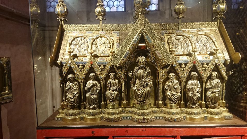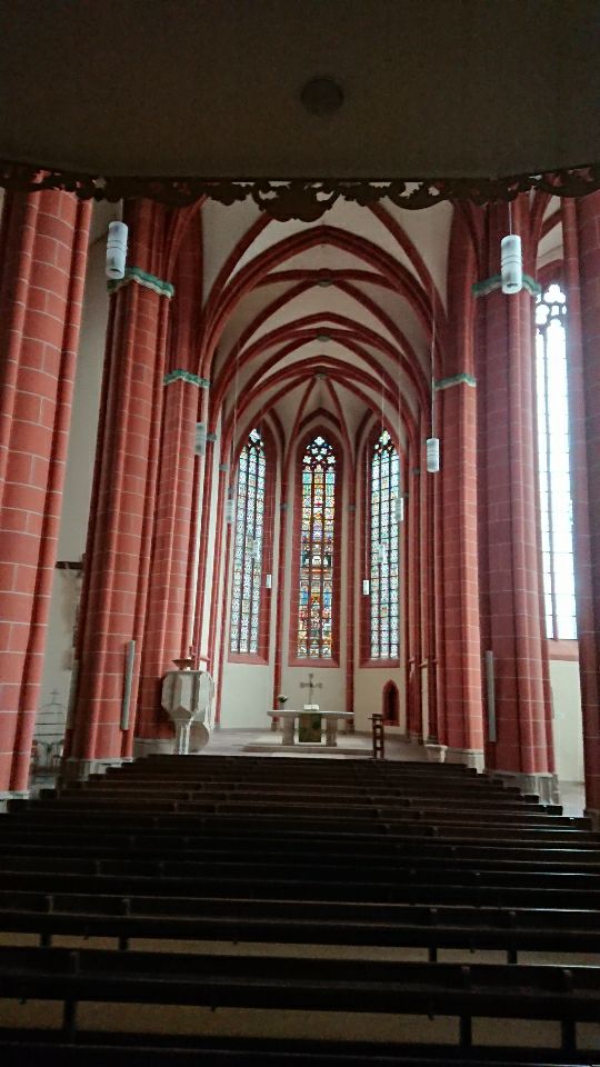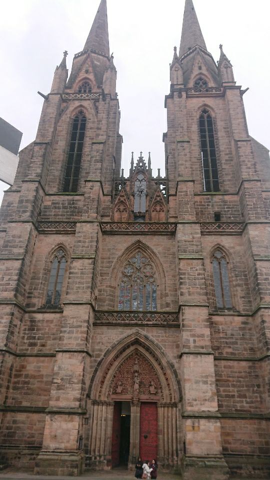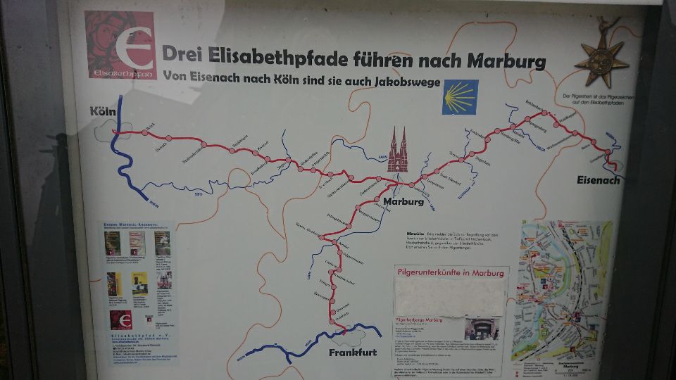 Ich bin jetzt am Ziel meiner Pilgerwanderung, der Elisabethkirche in Marburg, angelangt. Sie ist die früheste rein gotische Kirche Deutschlands. Der Grundstein wurde 1235, nur 4 Jahre nach Elisabeths Tod gelegt. Leider wird der Chorraum saniert und weder das Grab Elisabeths noch die Jesusfigur von Barlach sind zugänglich. Dafür kann man den Goldenen Schrein mit vier Szenen aus ihrem Leben sehen.