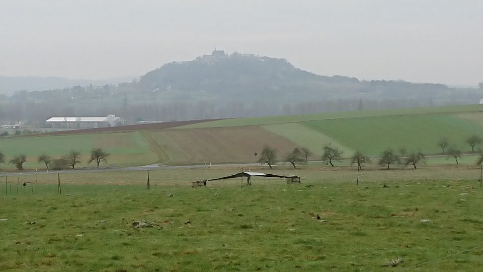 Als ich aus dem Ort heraustrete, fällt in der Ferne ein die Landschaft dominierender Hügel mit einer Kirche drauf auf. Es ist mein Etappenziel, Amöneburg. Einerseits ist es schön, sein Ziel so direkt vor Augen zu haben, man kann einschätzen, wie weit es weg ist. Andererseits zollt es einem natürlich auch Respekt ab, insbesondere die erhöhte Lage, da ist noch etwas physikalische Arbeit angesagt heute.