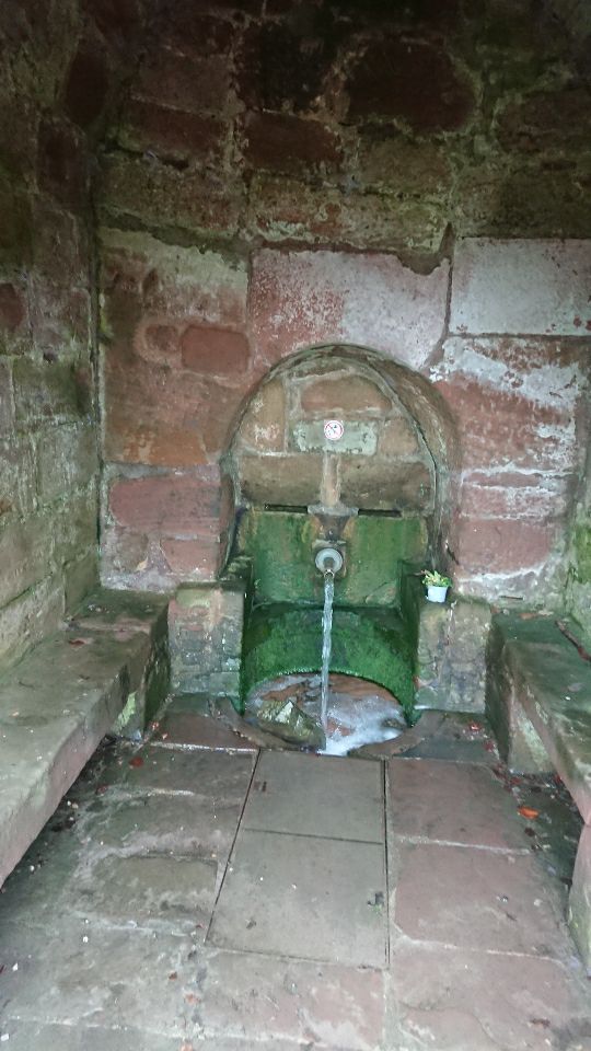 Am Elisabethbrunnen eine Frau, die von der gut sprudelnden Quelle trinkt. Es hängt dort zwar ein „Kein Trinkwasser“-Schild, aber sie sagt mir, das Wasser würde nur nicht regelmäßig kontrolliert, wäre aber einwandfrei. Ich tue es ihr gleich und muss mich ziemlich tief hinunterbücken. Das Wasser ist eisig und nur in kleinen Schlücken zu genießen. Eine schöne Erfrischung.