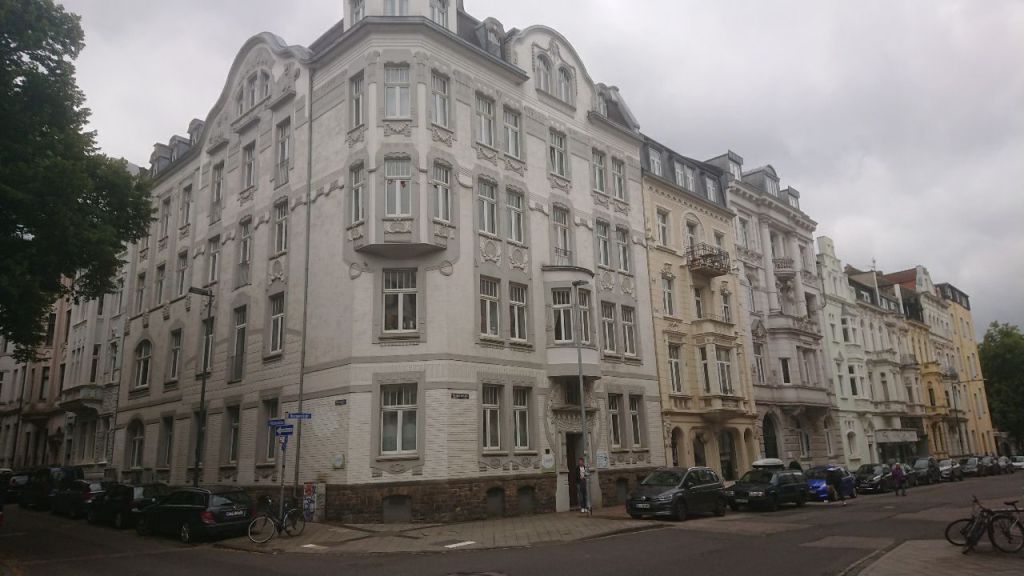 Wir biegen jetzt ein in die Viktoriaallee, wo es noch alte neoklassizistische Gebäudezüge gibt.