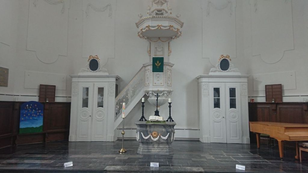 In Aachen hatte es Konflikte zwischen Katholiken und Protestanten gegeben, die zur Ausweisung der Protestanten geführt hatten. In Monschau, damals noch Montjoie, gab es bereits im 17. Jahrhundert aufgrund der dort herrschenden Religionsfreiheit eine evangelische Gemeinde mit aufgrund der ab 1750 florierenden Tuchherstellung wohlhabenden Mitgliedern, die die Finanzierung der Stadtkirche ermöglichten. Auffällig ist hier die Platzierung der Kanzel, wo das Wort Gottes aus der Bibel verkündet wird, direkt hinter dem Altar mit der Bibel im Zentrum.