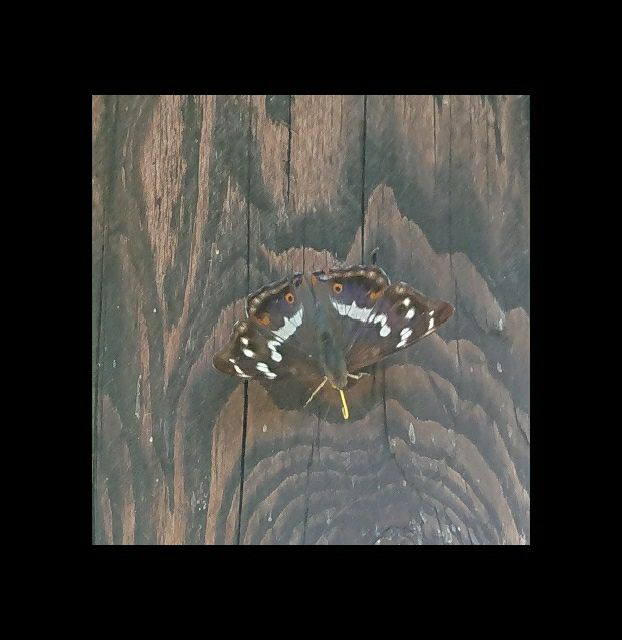 Am Wegesrand grüßen uns wilde Vergissmeinnicht und viele Margheriten. Wir sehen einen braunen Schmetterling auf einer Schutzhütte, ein kleiner Eisvogel?