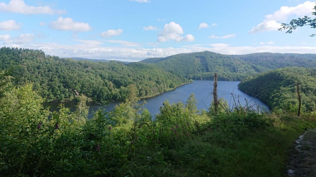 Wir kommen an den Standorten der Reinartzhöfe vorbei, die 1950 der Wesertalsperre Eupen weichen mussten, die als Trinkwasserquelle genutzt wird. Sie hätten das Wasser zu sehr verschmutzt.