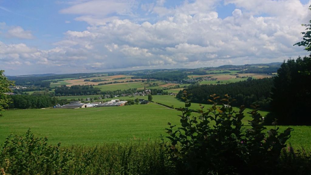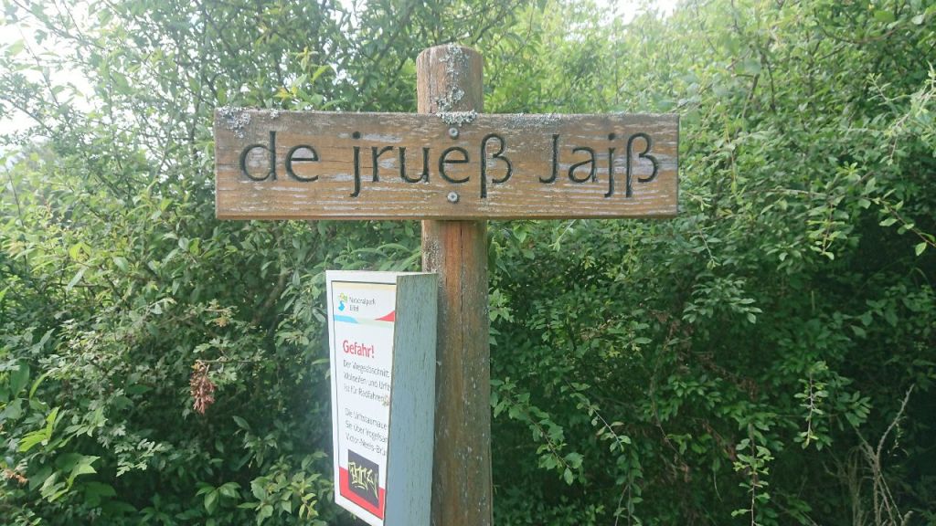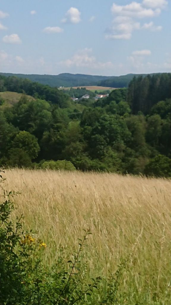 Kurz danach treffen wir auf eine Frau, die doch tatsächlich ihre beiden Teenagertöchter überredet hat, ein paar Etappen von Hillesheim bis Himmerod auf dem Eifelsteig zu wandern. Sie übernachten in Jugendherbergen und legen morgen in Daun erstmal einen Ruhetag ein.