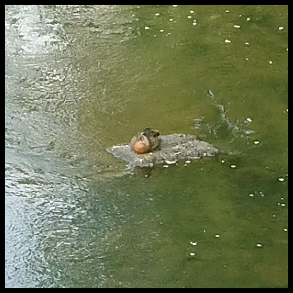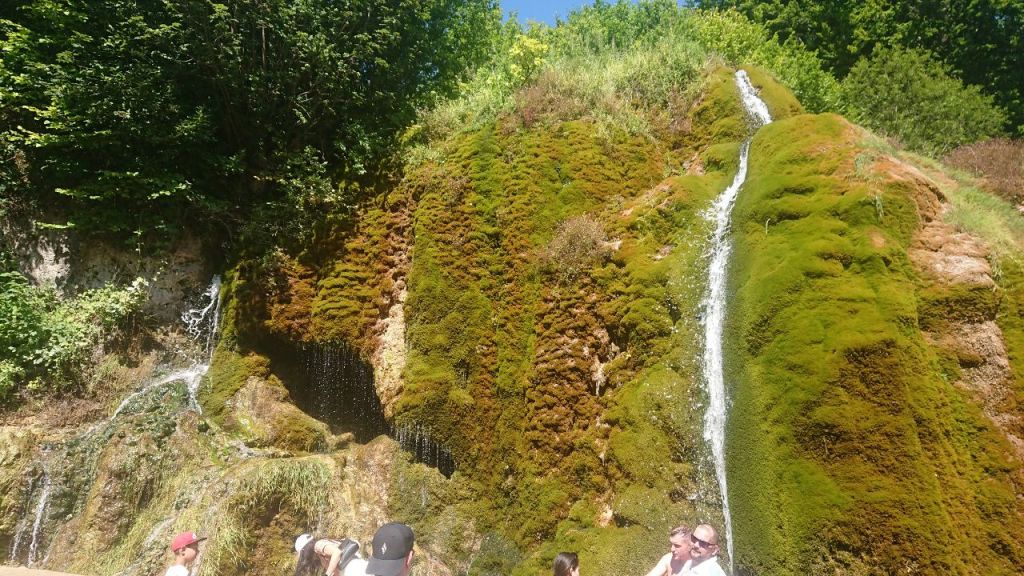 Der nächste Anlaufpunkt ist der Brunnenplatz an der Kyll, wo die offizielle Zapfstelle für das Gerolsteiner Mineralwasser ist. Es tröpfelt kurz und ich schmecke in der Tat die natürliche Kohlensäure – eher Medium – und eine feine Salznote. Nahebei unter der Kyllbrücke schläft eine Ente auf einem Stein. Die Kyll, die bei Trier-Ehrang in die Mosel mündet und im Zitterwald im deutsch-belgischen Grenzgebiet entspringt ist übrigens mit knapp 128 km der längste Fluss der Eifel, deutlich länger als die Ahr, die nur 89 km misst.