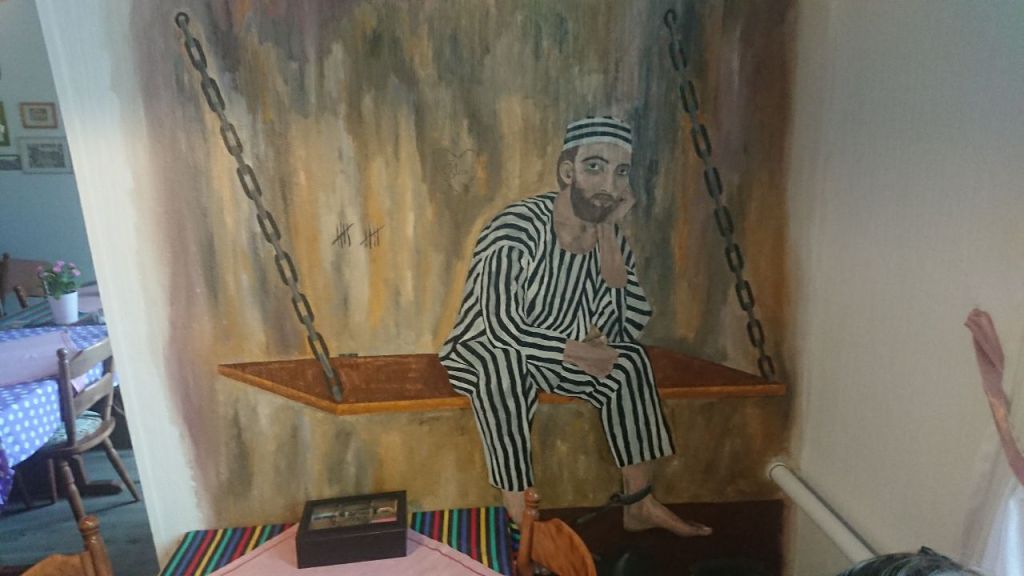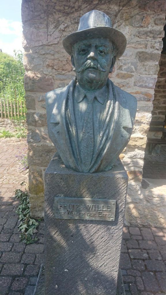 Nach rund 10 Km kommen wir in Kornelimünster an, wo wir die Mittagspause mit einem belegten Brötchen einlegen. In der Reichsabtei ist eine kostenlose Kunstausstellung, die sich insbes. Fehlstellen widmet, es werden die Rückseiten der Bilder gezeigt, unbekannte Künstler verbergen sich hinter Vorhängen, die man aufziehen kann. Ein Bild des Expressionisten Campendonk erinnert mich sehr stark an Chagall.