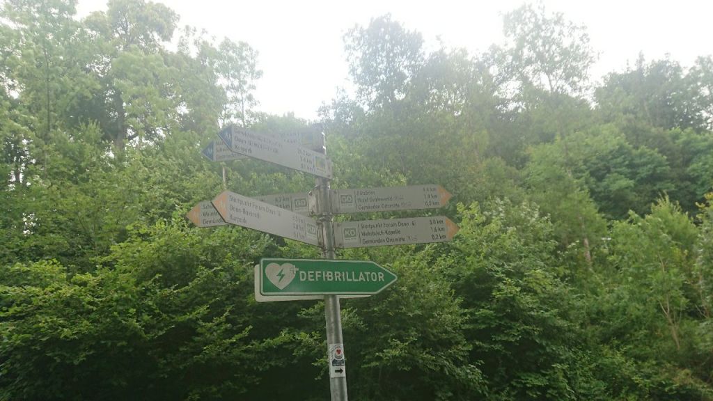 Kurz hinter dem Ort gibt es im Wald eine Umleitung links hinunter aufgrund von Baumfällarbeiten, man hört im Hintergrund Sägegeräusche. Das Besondere an ihr ist, dass sie 1,3 km kürzer ist als der Originalweg, der eifelsteigtypisch einen großen Schlenker in Form einer Haarnadelkurve macht.