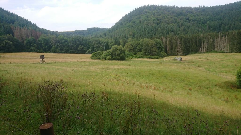 Nachdem wir aus dem Salmtal kurz heraustreten, hören wir auf der Wiese die Grillen zirpen.