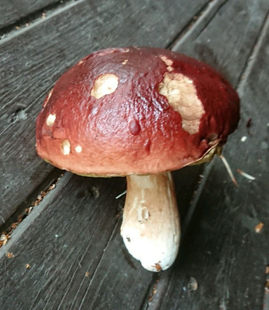 In einer Schutzhütte liegt auf dem Tisch ein Prachtexemplar eines Steinpilzes. An der Wand hängt ein spöttisches Gedicht über das Bergwaldschwein. Wir fühlen uns nicht wirklich angesprochen.