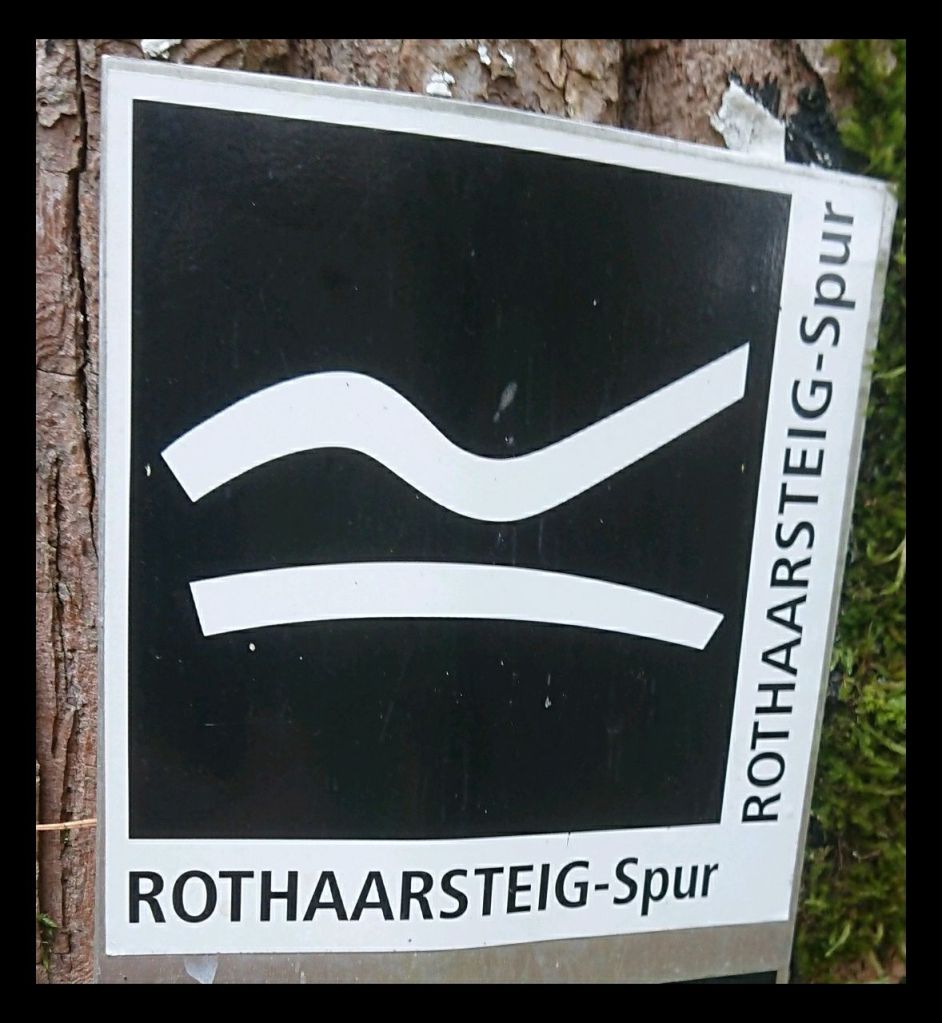 Hinter Irmgarteichen, wo die Grundschulkinder gerade auf dem Schulhof spielend ihre Pause nutzen, kommen wir erst auf einen Kreuzweg, der sich in den Wald hoch zieht. Hinter dem Friedhof stoßen wir bald auf den Rothaarsteig, den bekannten Fernwanderweg zwischen Brilon und Dillenburg, der auf meiner To Hike Liste steht.
