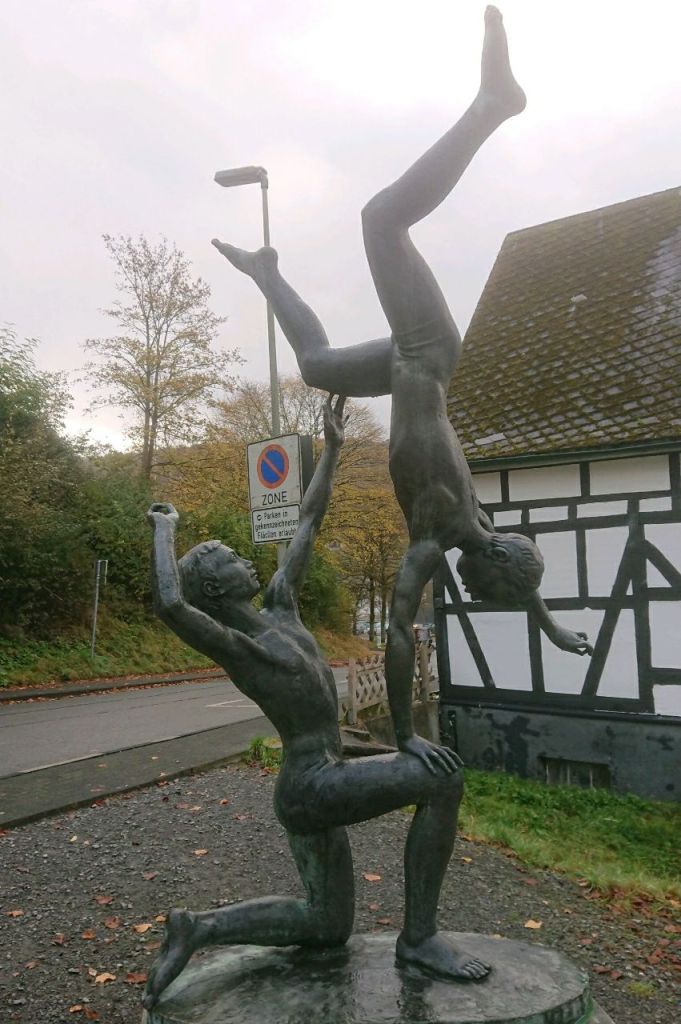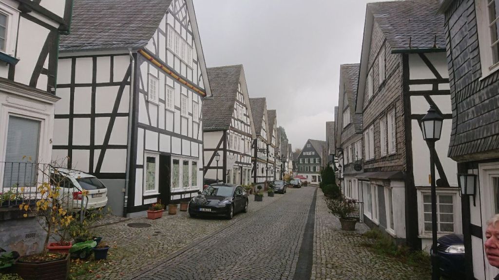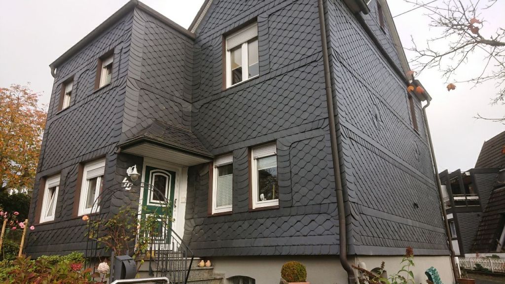 Die Frontseiten der Häuser sind hier meist mit Schiefer verkleidet, manche Häuser sind auch vollständig von Schiefer eingefasst. Siegerland und Bergisches Land gehören ja bekanntlich zum Rheinischen Schiefergebirge, auf den Wegen kommen wir auch immer wieder über steinige Passagen aus Schiefer.