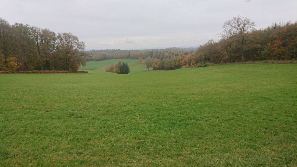 Heute sind die Wege recht matschig und die von der Landwirtschaft genutzen Straßen glitschig. Es riecht überall ein bisschen nach Gülle, selbst mitten im Wald. Die Felder sind offensichtlich kürzlich gedüngt worden.