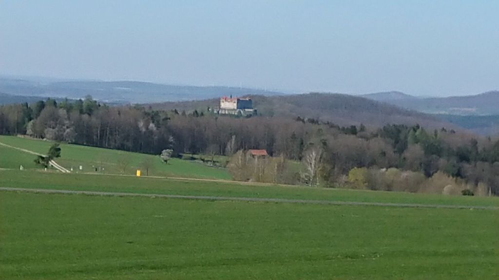 In der Ferne erkenne ich im Norden das Schloss Bieberstein auf dem Kugelberg.