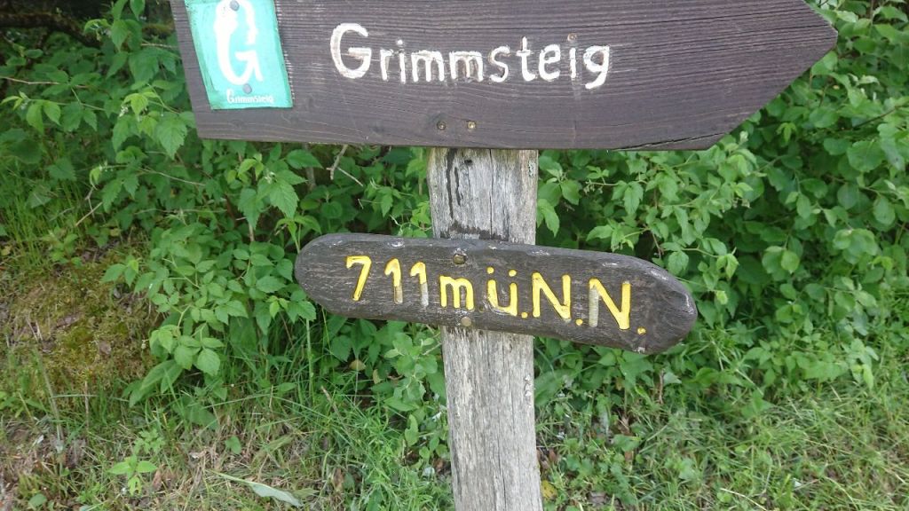 Beim Abstieg kommen uns die bisher ersten Grimmsteigwanderer entgegen, zwei junge Männer, die etwas ausgepumpt wirken, was angesichts des langen Anstiegs von der Südseite her wenig verwundert.