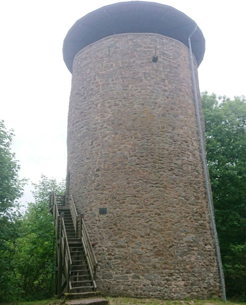 Wir kommen nun zur Burgruine Reichenbach, deren Turm mit dem Geld eines betuchten einheimischen Bürgers saniert wurde. Vor gut 15 Monaten war ich schon einmal hier gewesen, wie mir beim Lesen der Plakette mit dieser Info klar wird.