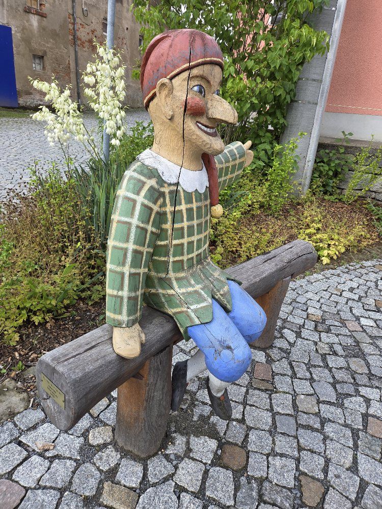 Nach einem ausgiebigen Frühstück gehen wir die Waldstraße hinunter ins Ortszentrum. Wir kommen am Hohnsteiner Kasper vorbei, im Max Jacob Theater werden heute noch Puppenspiele gezeigt.
