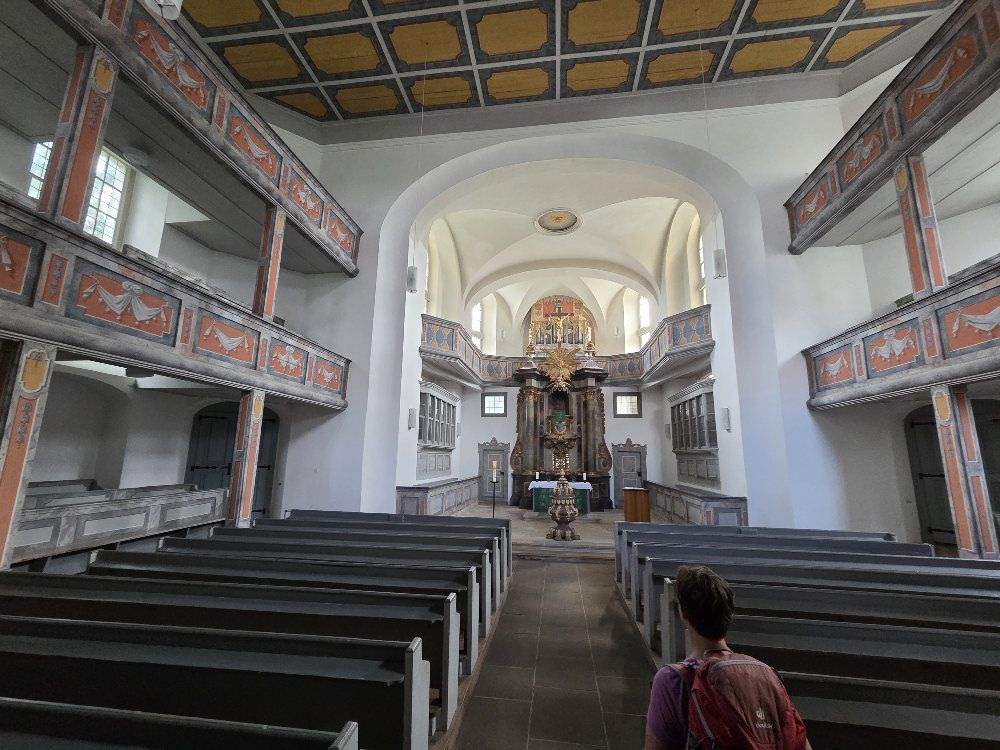 Die nach den Plänen von George Bähr, dem Architekten der Dresdener Frauenkirche, errichtete evangelische Kirche ist vor allem im Innenraum ein lichtdurchflutetes Schmuckstück mit der bunten Holzkassettendecke und den Patronatslogen.