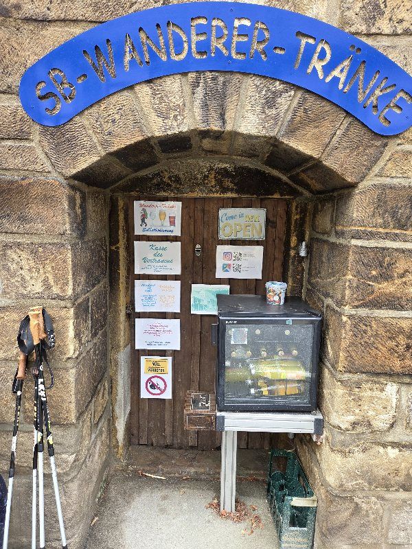 Beim Frühstück sind wir an einem Vierertisch mit einem holländischen Paar platziert; er erzählt uns vom Dutch Mountain Trail in Südholland. Die beiden hängen an den Malerweg dann noch den 100 km langen Kammweg durch die Böhmische Schweiz dran.