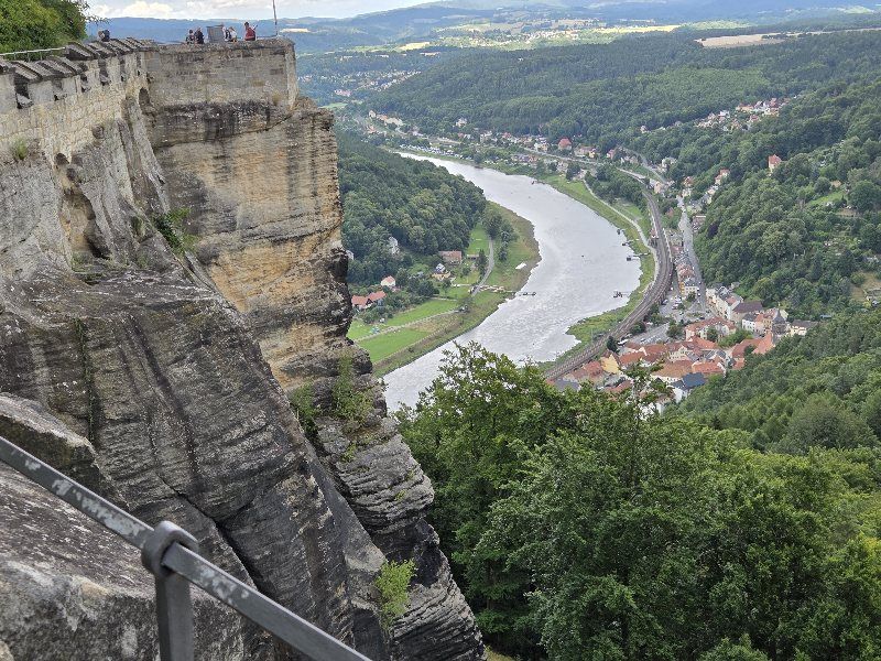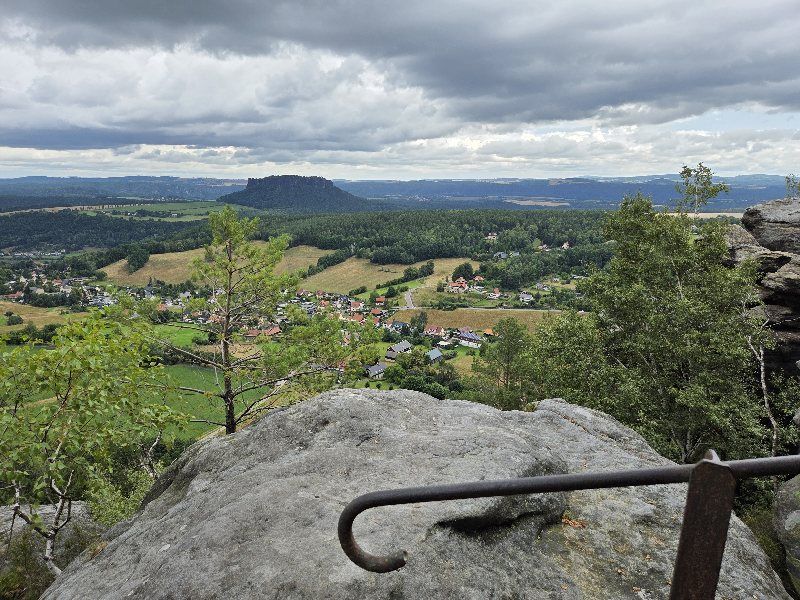 Wir haben von dort oben phantastische Aussichten zu den in den letzten Tagen von uns bewanderten Sehenswürdigkeiten der Sächsischen Schweiz.