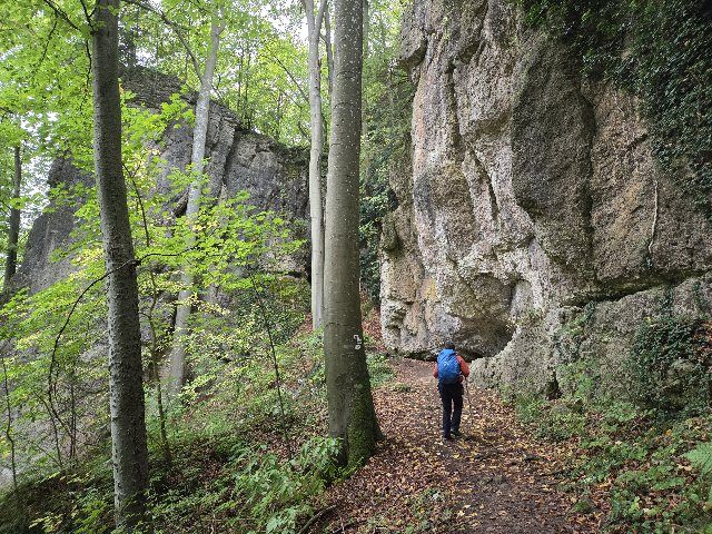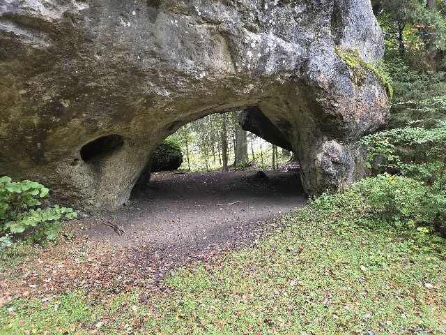 Hinter Plech kommen wir bald in den Veldensteiner Forst, einen Mischwald mit vielen intakten Fichten. Wir passieren die eindrucksvolle Felsformation Kuckucksloch.