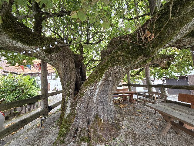 Mitten im Ort steht eine beeindruckend große Linde, in der an Festtagen auch heute noch getanzt wird.