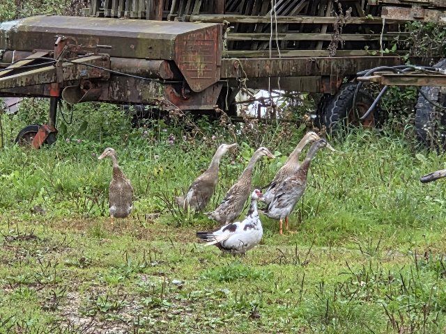 Wir kaufen Datteln im Dorfladen, wettermäßig sieht es trüb aus. Wir werden den ganzen Tag von längeren Regenpassagen heimgesucht, die Schirme tun ihren Dienst.