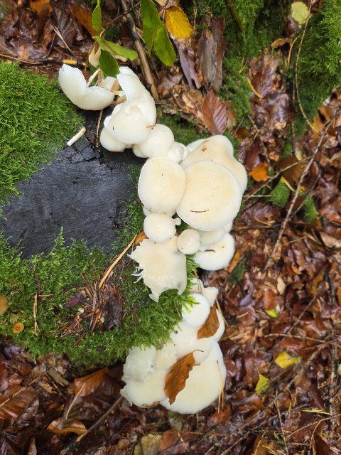 Weiter geht es durch den Wald, wir bedienen uns an den köstlichen saftigen Birnen, die in mehreren Kisten am Waldrand stehen. Ein weiteres Highlight ist eine Pilzfamilie, laut Gugl ein Gallertiger Zitterzahn oder auch Eispilz.