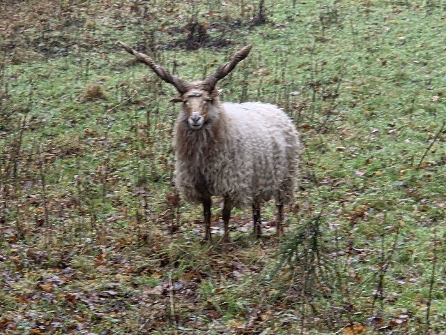 Während der Coronazeit haben wir einige Premiumwanderungen gemacht, u.a. auch die Rauenthaler Spange, der der Rheinsteig teilweise folgt. Ich sehe eine Schafherde und dann eine kleine Gruppe mit einem Schafbock, von dem ich nicht auf die Hörner genommen werden möchte.