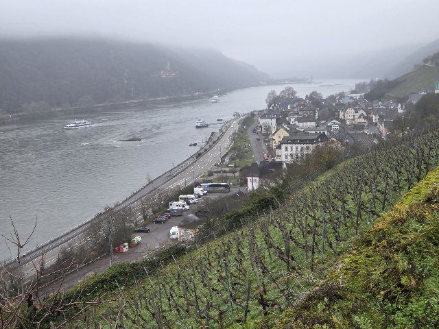 Im Wald erwartet mich noch ein Wildgehege und dann versuche ich, den Abstieg links der Weinberge abzukürzen. Keine gute Idee, weil der Hang zum einen extrem steil ist und ich zum Zweiten keinen Weg am Waldrand finde, der zum Bahnhof runterführt. Ich muss also nochmal ein gutes Stück parallel zum Rhein in die falsche Richtung zum Assmannshäuser Höllenberg gehen, bevor ich den Stufenweg bergab antreten kann. Natürlich verpasse ich dadurch so gerade meine Bahn nach Frankfurt, auf jeden Fall ist meine wie immer sehr abwechslungsreiche Wanderung hier am Bahnhof von Assmannshausen zu Ende.