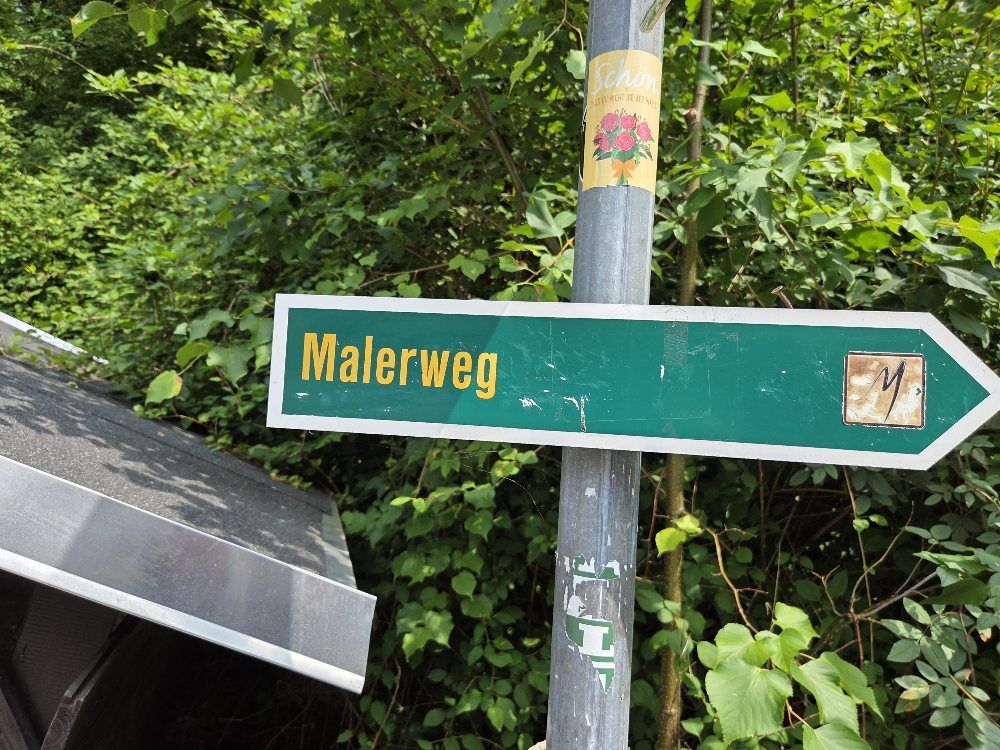 Hinter Krippen, wo wir die zackige Wegführung etwas abkürzen, hören wir langgezogene, schrille Schreie im Wald. Man sieht von unten die Silhouette von zwei kleinen Greifvögeln, es handelt sich laut App um ein Sperberpaar.