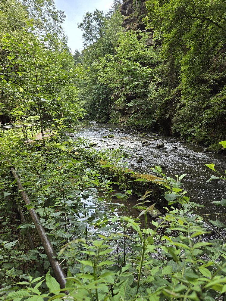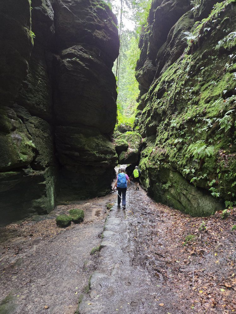 Morgens wieder ein Frühstück zu acht in der engen Küche in unserer Unterkunftin Schmilka. Neben einem französischen Paar aus der Picardie nördlich von Reims, das wir gestern schon an der Mühle getroffen hatten, zwei junge deutsche Wanderinnen und zwei Engländer, die Tagestouren machen. Der Hausherr erklärt die um über 100 auf 65 Personen gesunkene Einwohnerzahl in Schmilka. Zum einen ist die Bevölkerung stark überaltert, zum anderen sind die Mieten aufgrund des hohen Anteils von Fremdenverkehrszimmern, die zu rund 100 Euro pro Nacht vermietet werden können, mit um die 3000 Euro pro Wohnung unbezahlbar. Da geht es Schmilka ähnlich wie bekannteren touristischen Hotspots wie Barcelona oder Mallorca.