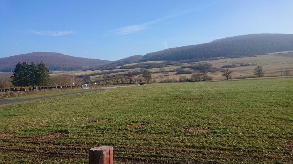 Heute mittag ist Wanderhalbzeit, ich bin freudig überrascht, dass noch so viel vor mir liegt. Eine kleine Unachtsamkeit und ich bin vom Weg ab, auf den ich aber schnell wieder zurückkomme dank Wanderapp E-Walk. Ich stoße auf einen Rhön-Rundweg, hier scheint also doch noch ein Ausläufer der Rhön zu sein.