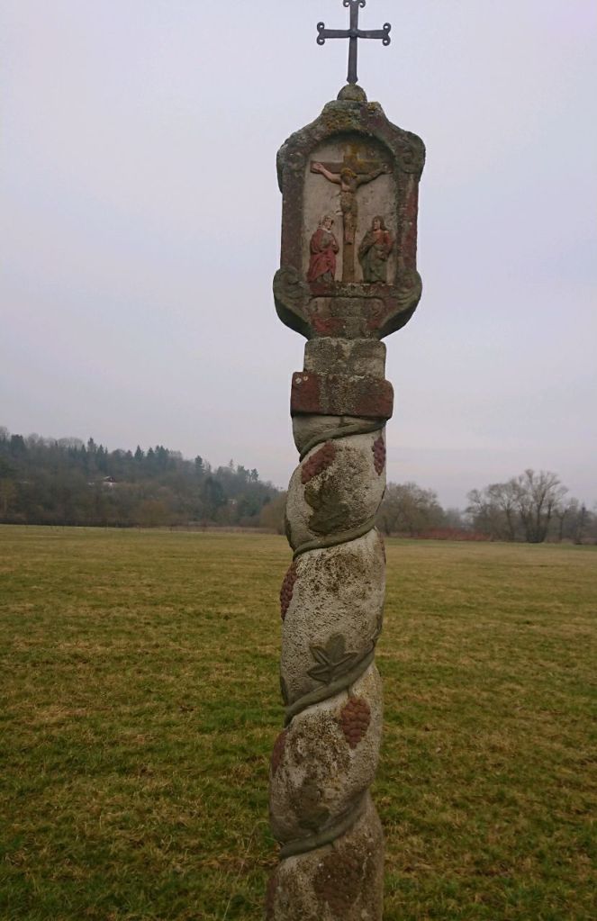 Ein paar Meter abseits des Wegs gehe ich ein paar glitschige Steinstufen hinunter zum Leprakreuz und stürze fast. Hier war wohl eine Station für aus den Kreuzzügen an Lepra erkrankte Rückkehrer.