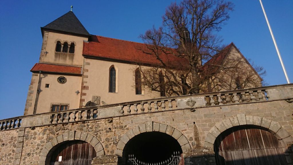 Ein lohnenswerter Abstecher von der A66-Parallelstrecke ist Wichtheim. Die von Katholiken und Protestanten gemeinsam genutzte Simultankirche ist auf und ich erfreue mich an den lichtdurchlässigen Kirchenfenstern mit roten Einsprengseln. Außerdem hat Wichtheim noch ein Schlösschen zu bieten, das ähnlich aussieht wie das in Wächtersbach, nur viel kleiner ist.