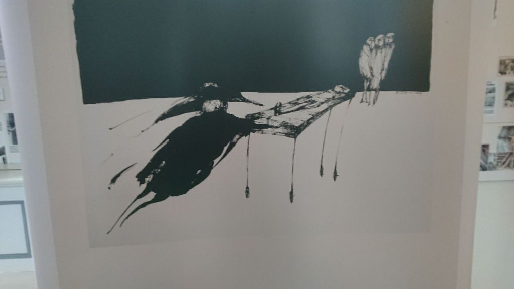 Ich gehe in die Ausstellung Arzt+Tod in der Katharinenkirche. Es wird ein großer Bogen gespannt vom 16. Jahrhundert und davor bis heute. Wie der Arzt dem Tod immer mehr auf die Schliche kommt im Laufe der Zeit – z. B. Röntgen – am Ende aber schlussendlich keine Chance hat. Im von mir ausgewählten Bild von 1968 schiebt der Tod sein Opfer auf der Bahre am nur zuguckenden Ärzteteam am Rande im Affentempo vorbei: „Der ist meiner!“