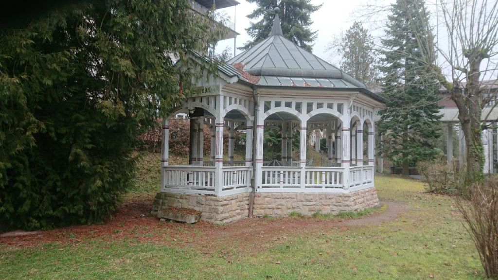 Auf dem Radweg tippele ich über eine Stunde lang und treffe zwei Spaziergänger bevor ich die Kinzig überschreite und die Kinzigbahnstrecke sowie die A66 das 1. Mal unterquere. Ich bin jetzt in Bad Soden und komme direkt am Pavillon der Pacificus-Quelle raus. Diese Quelle ist mit über 8 g H2CO3 auf den Liter angeblich die kohlensäurehaltigste Quelle Deutschlands. Was mich allerdings noch mehr verblüfft, das Wasser enthält 44 g Salz auf den Liter, also 4,4%. Zum Vergleich in der Nordsee beträgt der Salzgehalt 3,5%. Mit anderen Worten dieses „Heilwasser“ ist in seiner Ursprungsform untrinkbar. Aber zum Baden sicher wunderbar.